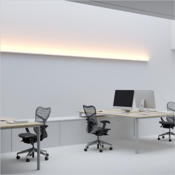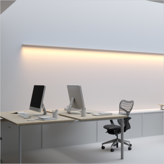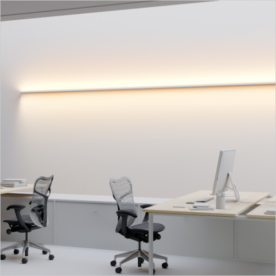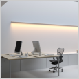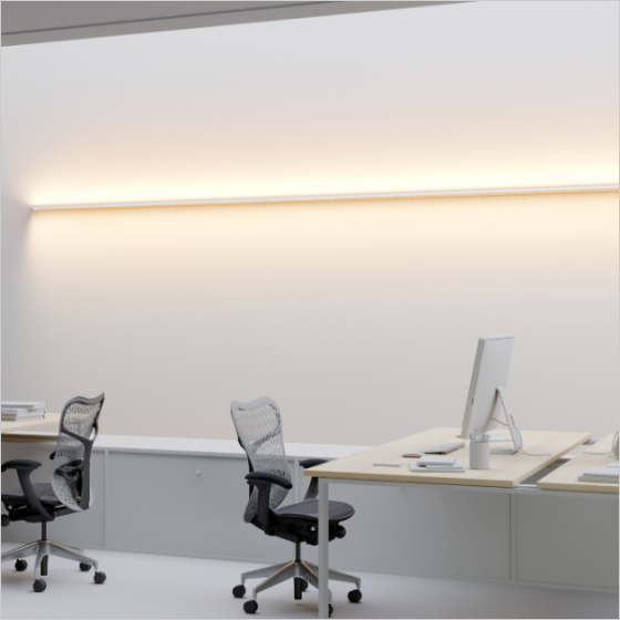 Direct/indirect lighting for ceiling wash, wall wash and grazing applications.